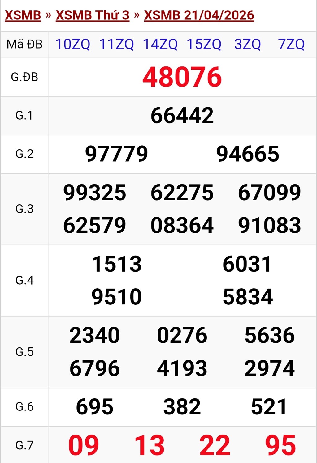 Kết quả xổ số miền Bắc ngày 21/4. KQXSMB 21/4/2026. XSMB 21/4.