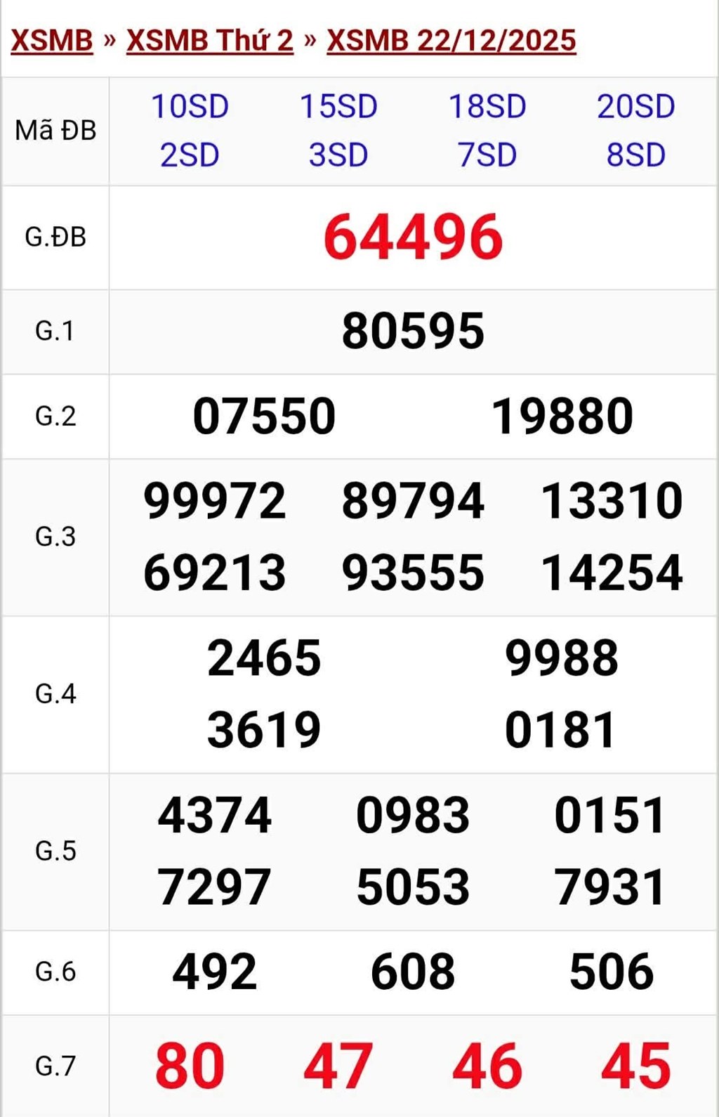 Kết quả xổ số miền Bắc ngày 22/12. KQXSMB 22/12/2025. XSMB 22/12.