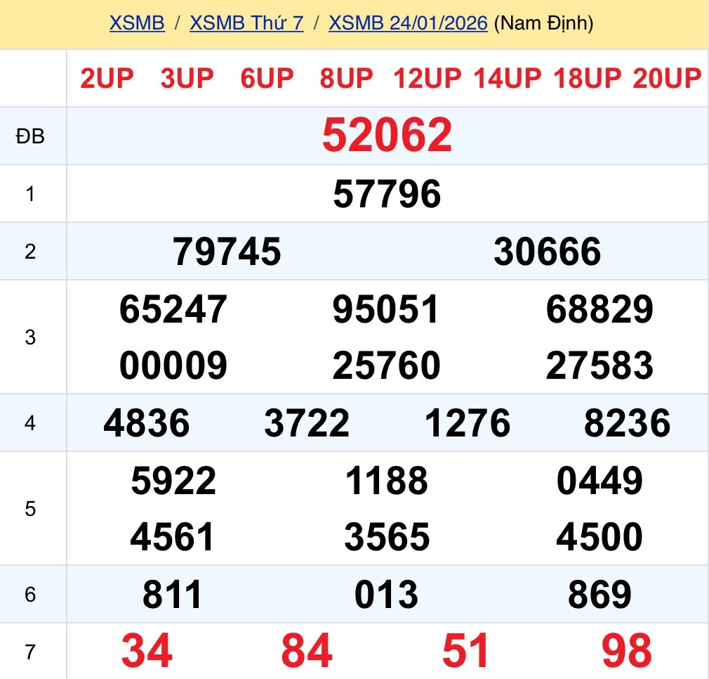 XSMB 24/1. Kết quả xổ số miền Bắc hôm nay ngày 24/1/2026. XSMB thứ Bảy ngày 24/1