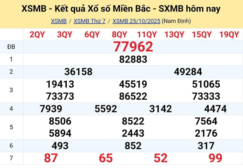Kết quả xổ số miền Bắc ngày 25/10. KQXSMB 25/10/2025. XSMB 25/10.
