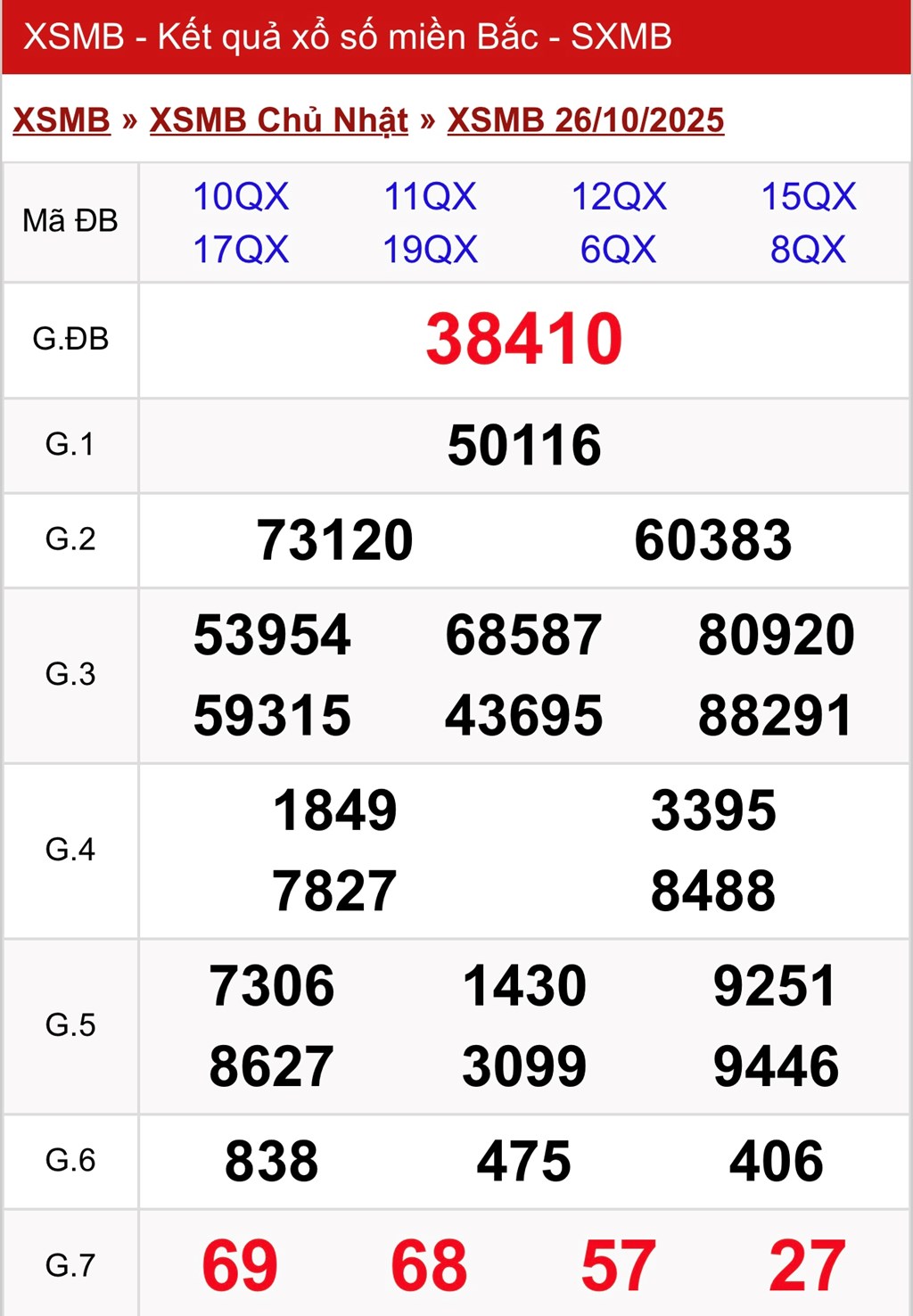XSMB 26/10. Kết quả xổ số miền Bắc hôm nay ngày 26/10/2025. XSMB chủ Nhật ngày 26/10