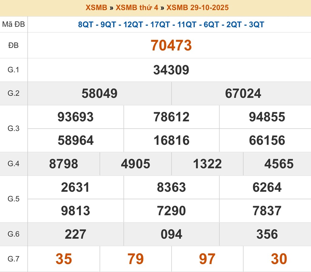XSMB 29/10. Kết quả xổ số miền Bắc hôm nay ngày 29/10/2025. XSMB thứ Tư ngày 29/10