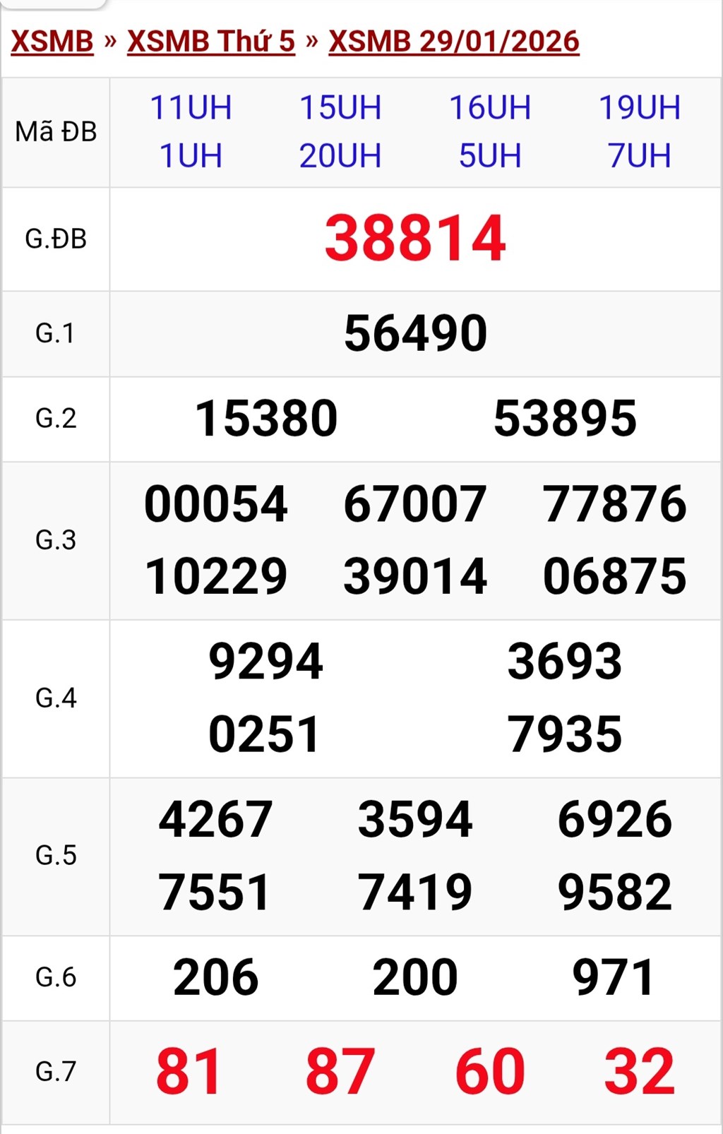 Kết quả xổ số miền Bắc ngày 29/1. KQXSMB 29/1/2026. XSMB 29/1.