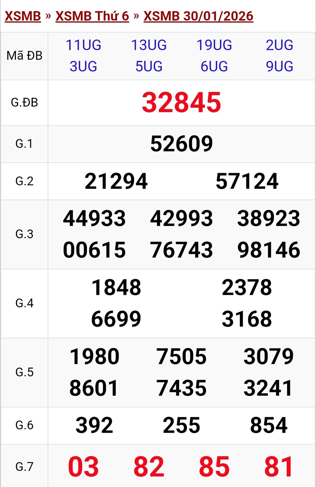 Kết quả xổ số miền Bắc ngày 30/1. KQXSMB 30/1/2026. XSMB 30/1.