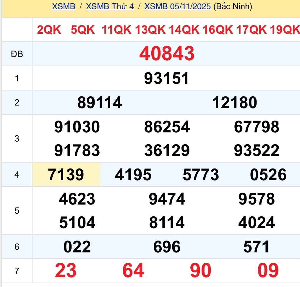 Kết quả xổ số miền Bắc ngày 5/11. KQXSMB 5/11/2025. XSMB 5/11.