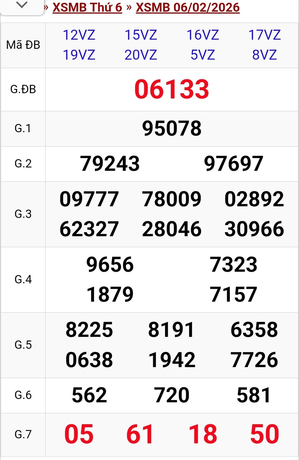 Kết quả xổ số miền Bắc ngày 6/2. KQXSMB 6/2/2026. XSMB 6/2.