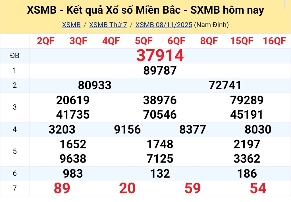 XSMB 8/11. Kết quả xổ số miền Bắc hôm nay ngày 8/11/2025. XSMB thứ Bảy ngày 8/11