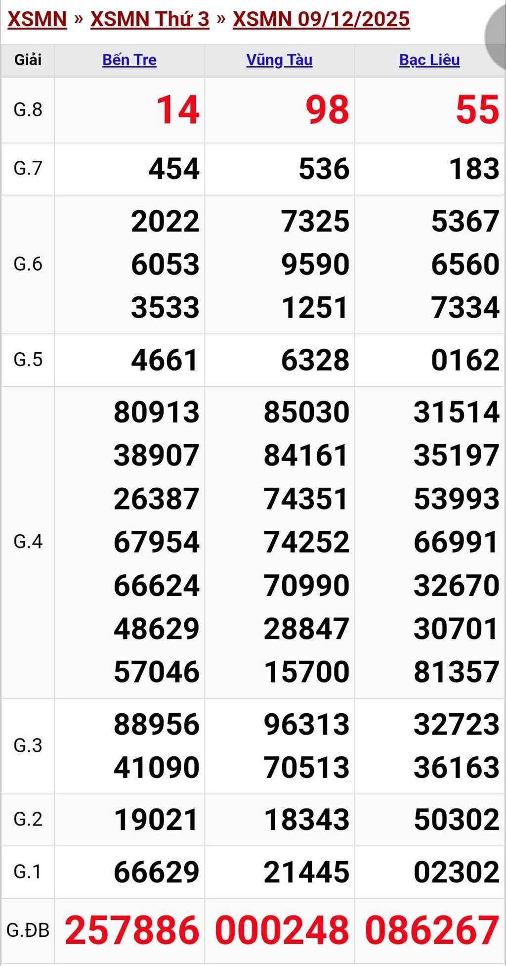 Bnews. XSMB 9/12. Kết quả xổ số hôm nay ngày 9/12. XSMB thứ Ba. Trực tiếp KQXSMB ngày 9/12. Kết quả xổ số miền Bắc hôm nay thứ Ba ngày 9/12/2025.