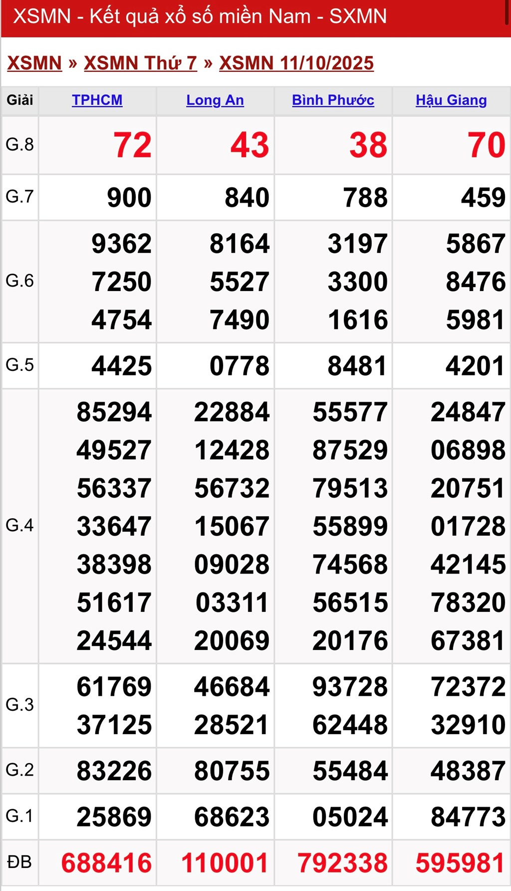 XSMN 11/10. Kết quả xổ số miền Nam hôm nay ngày 11/10/2025. XSMN thứ Bảy ngày 11/10