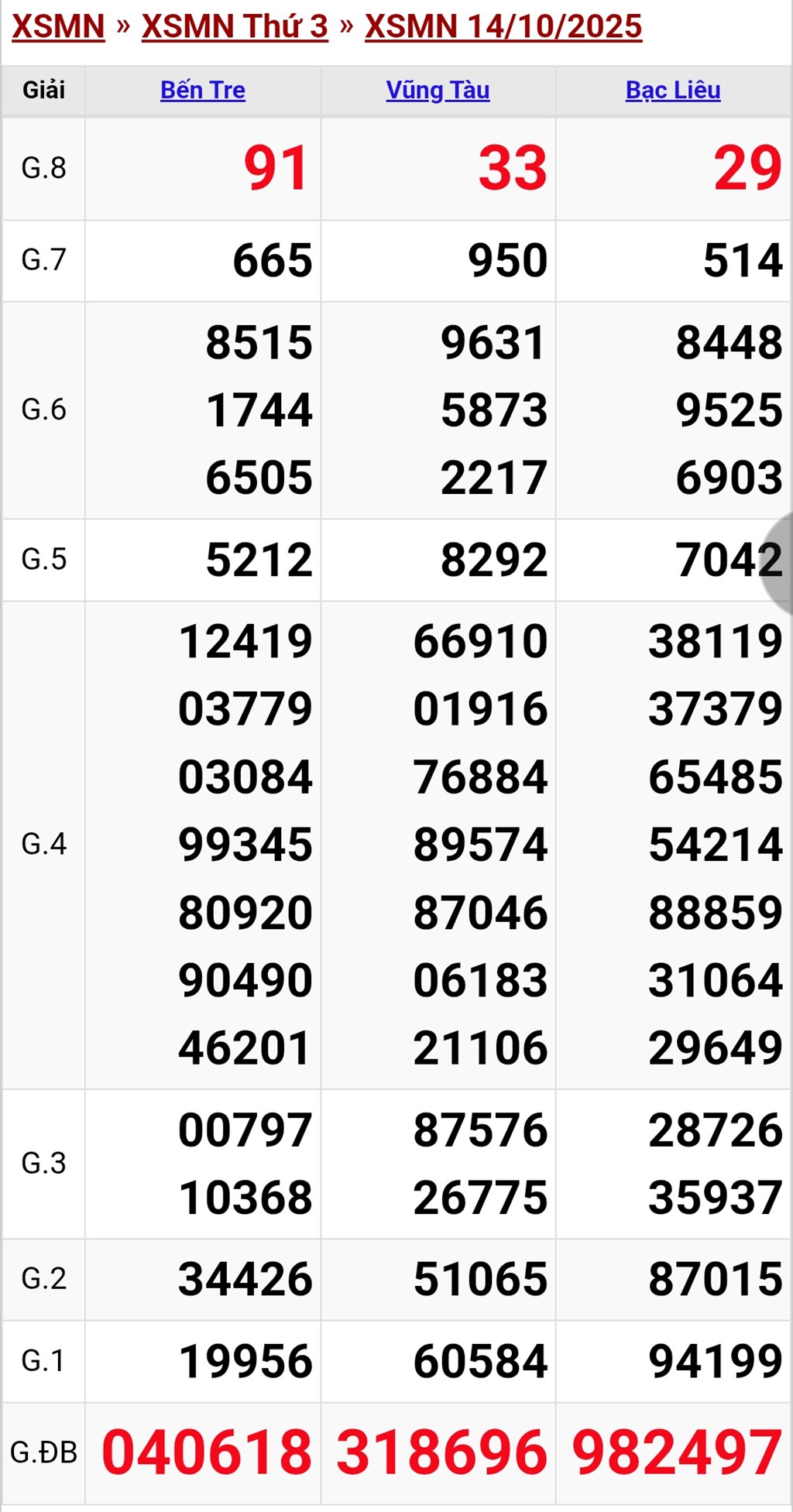 XSMN 14/10. Kết quả xổ số miền Nam hôm nay ngày 14/10/2025. XSMN thứ Ba ngày 14/10