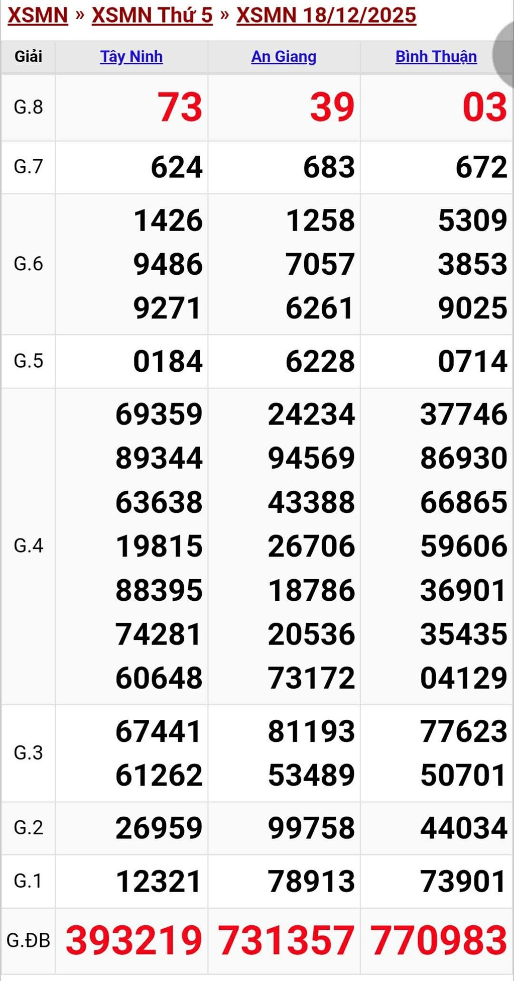 Kết quả xổ số miền Nam ngày 18/12. KQXSMN 18/12/2025. XSMN 18/12.