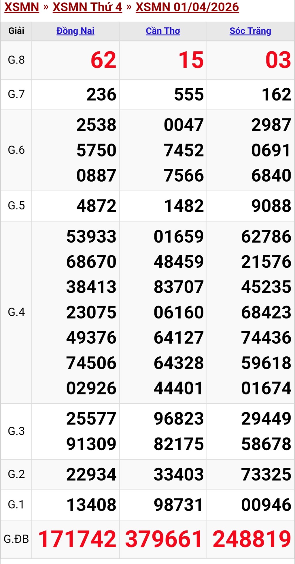 Kết quả xổ số miền Nam ngày 1/4. KQXSMN 1/4/2026. XSMN 1/4.