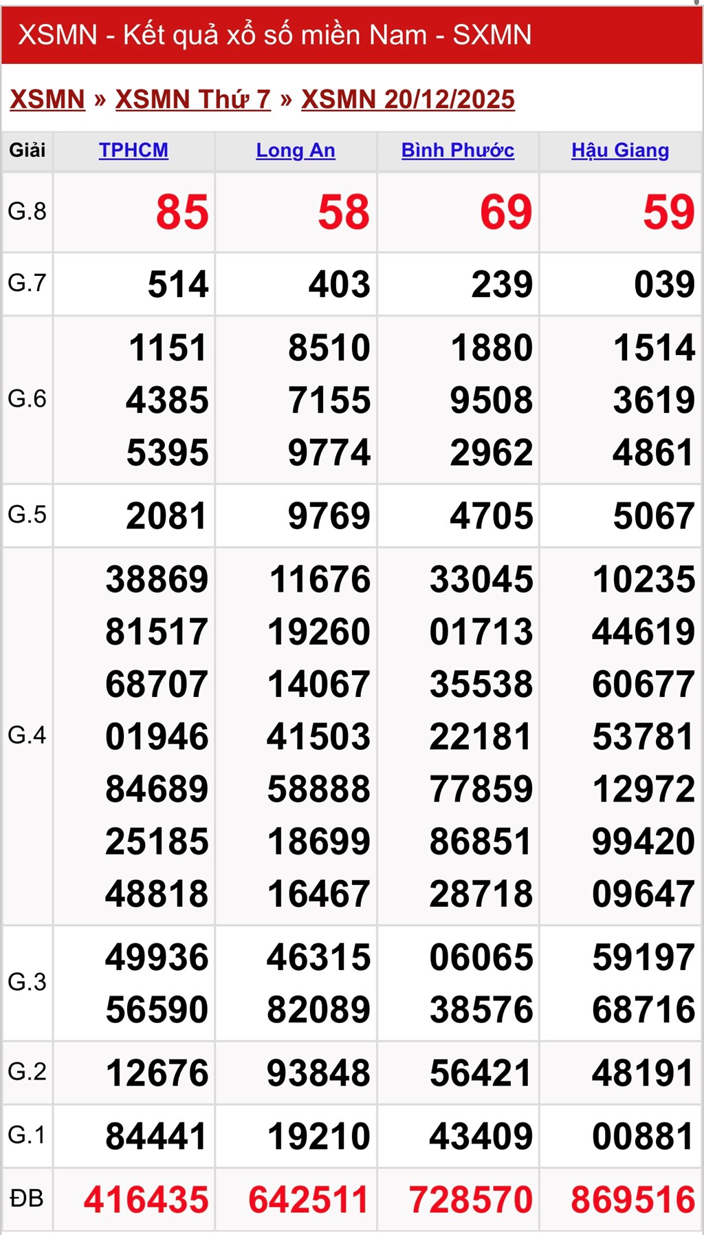 XSMN 20/12. Kết quả xổ số miền Nam hôm nay ngày 20/12/2025. XSMN thứ Bảy ngày 20/12