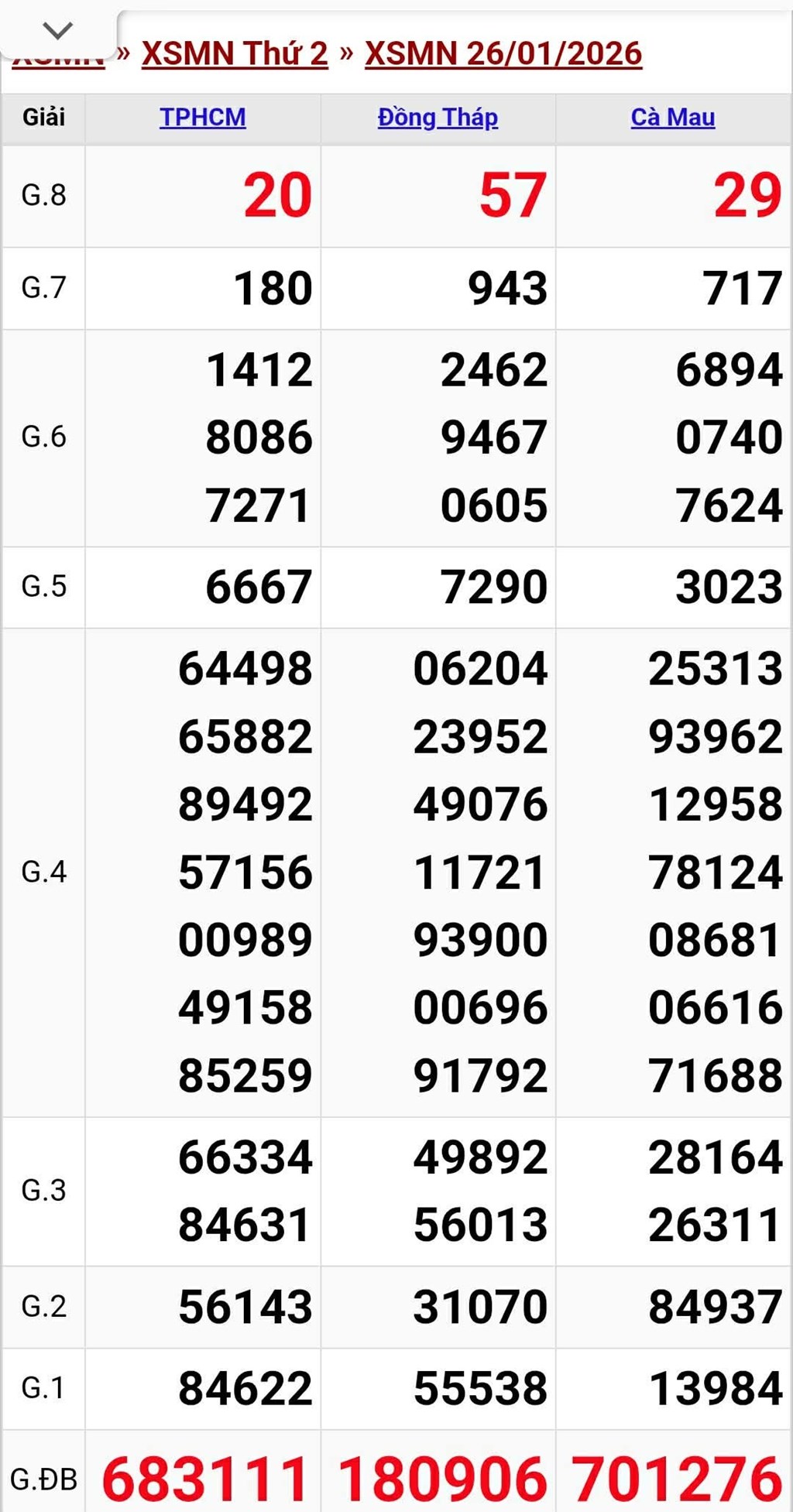 Kết quả xổ số miền Nam ngày 26/1. KQXSMN 26/1/2026. XSMN 26/1.