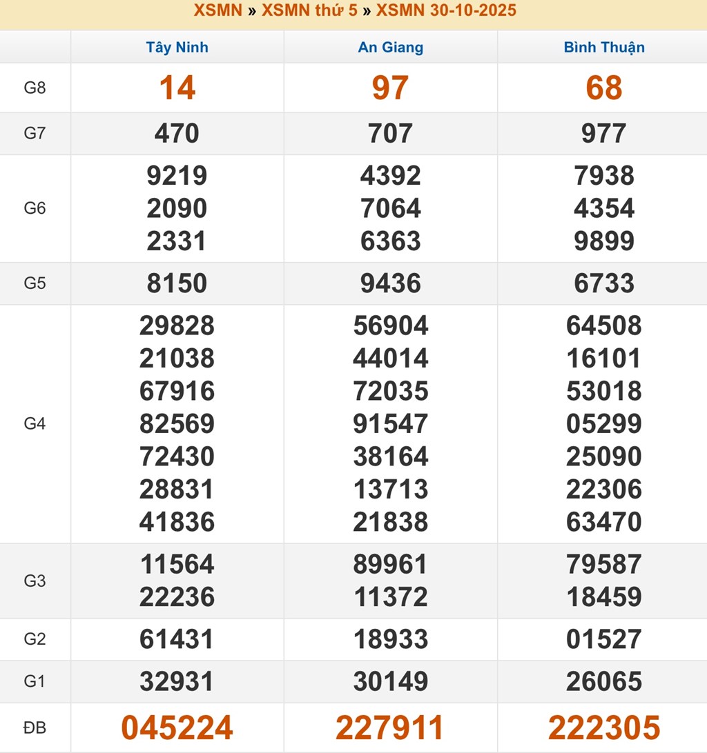 XSMN 30/10. Kết quả xổ số miền Nam hôm nay ngày 30/10/2025. XSMN thứ Năm ngày 30/10