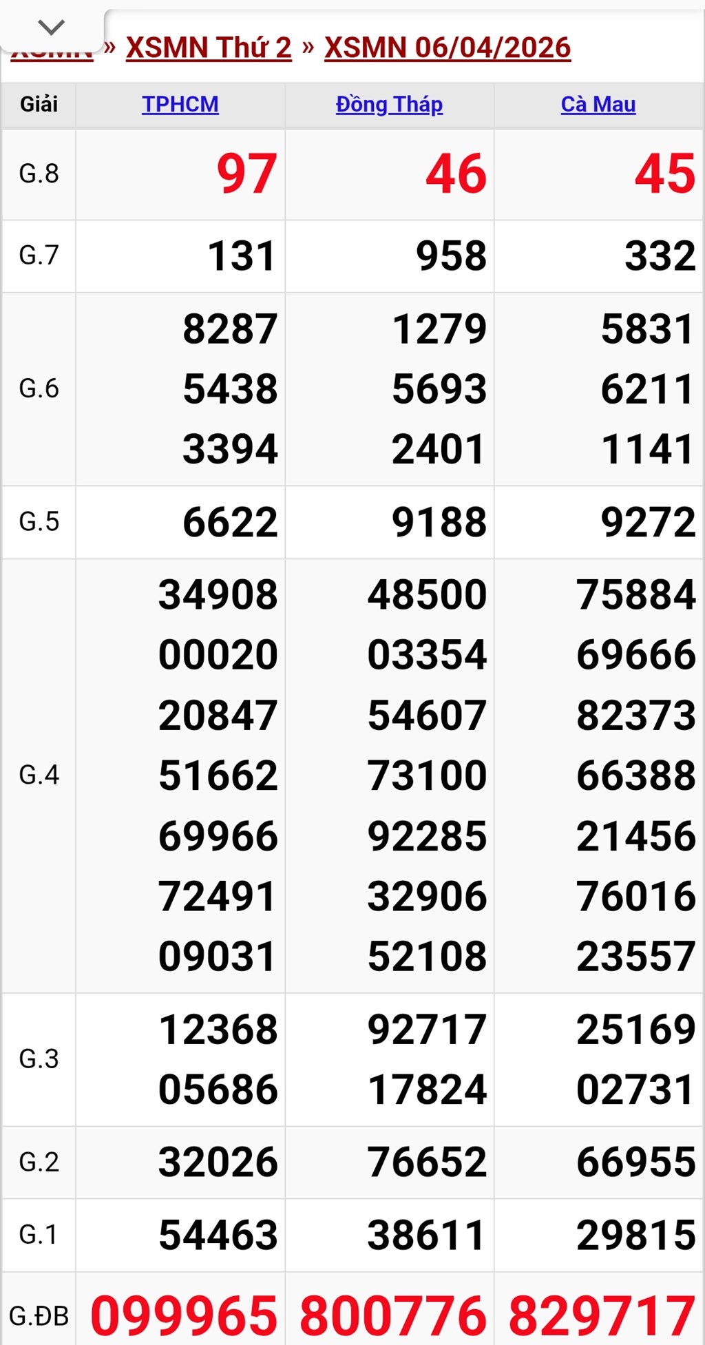 Kết quả xổ số miền Nam ngày 6/4. KQXSMN 6/4/2026. XSMN 6/4.