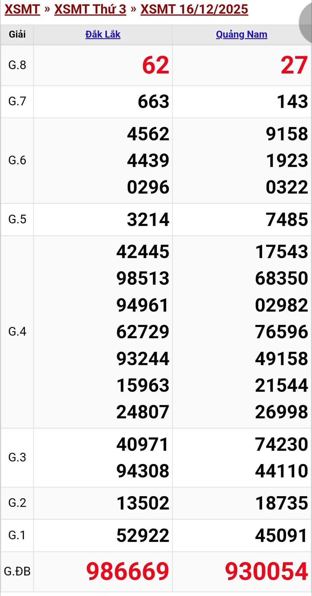 Bnews. XSMT 16/12. Kết quả xổ số hôm nay ngày 16/12. XSMT thứ Ba. Trực tiếp KQXSMT ngày 16/12. Kết quả xổ số miền Trung hôm nay thứ Ba ngày 16/12/2025.
