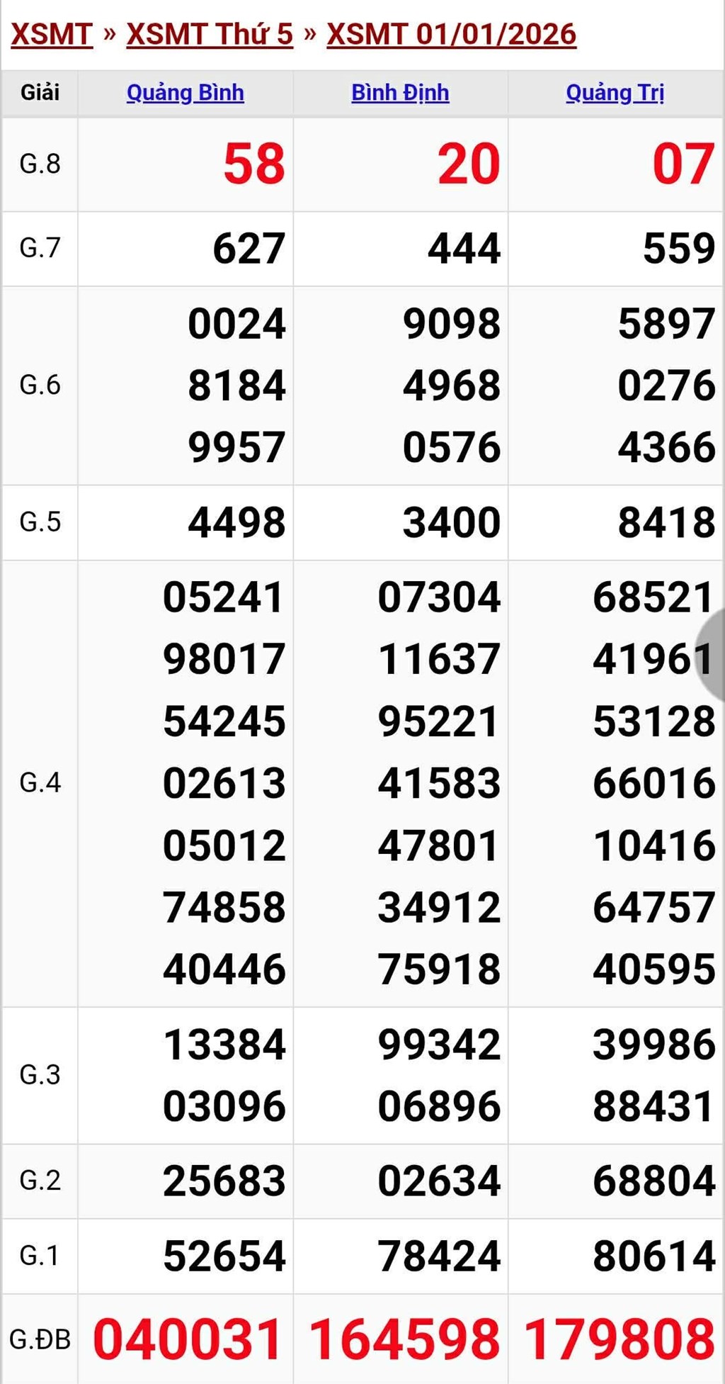 Kết quả xổ số miền Trung ngày 1/1. KQXSMT 1/1/2026. XSMT 1/1.