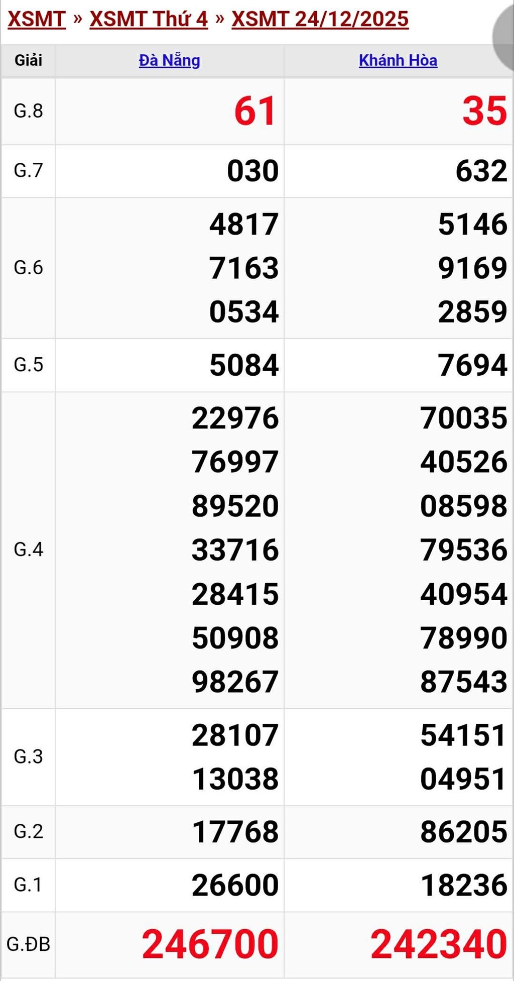 Kết quả xổ số miền Trung ngày 25/12/2025. KQXSMT 25/12