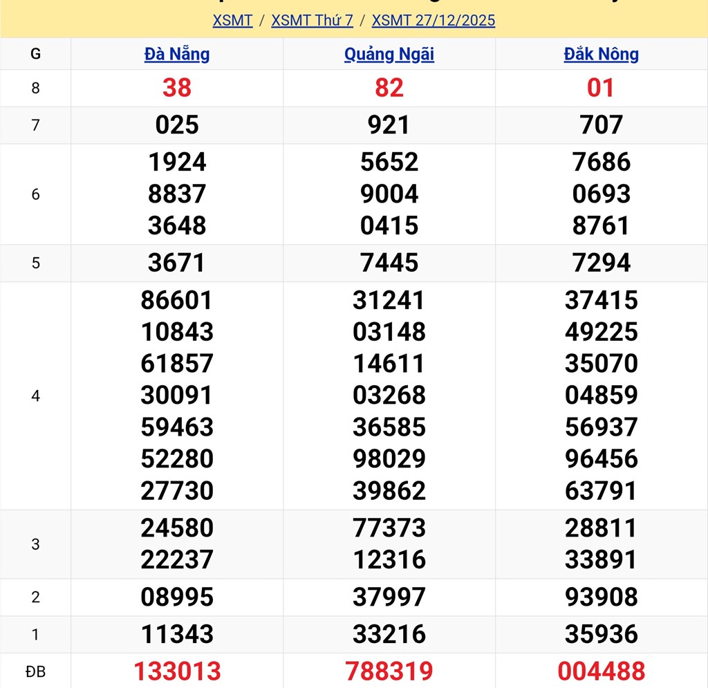XSMT 27/12. Kết quả xổ số miền Trung hôm nay ngày 27/12/2025. XSMB thứ Bảy ngày 27/12