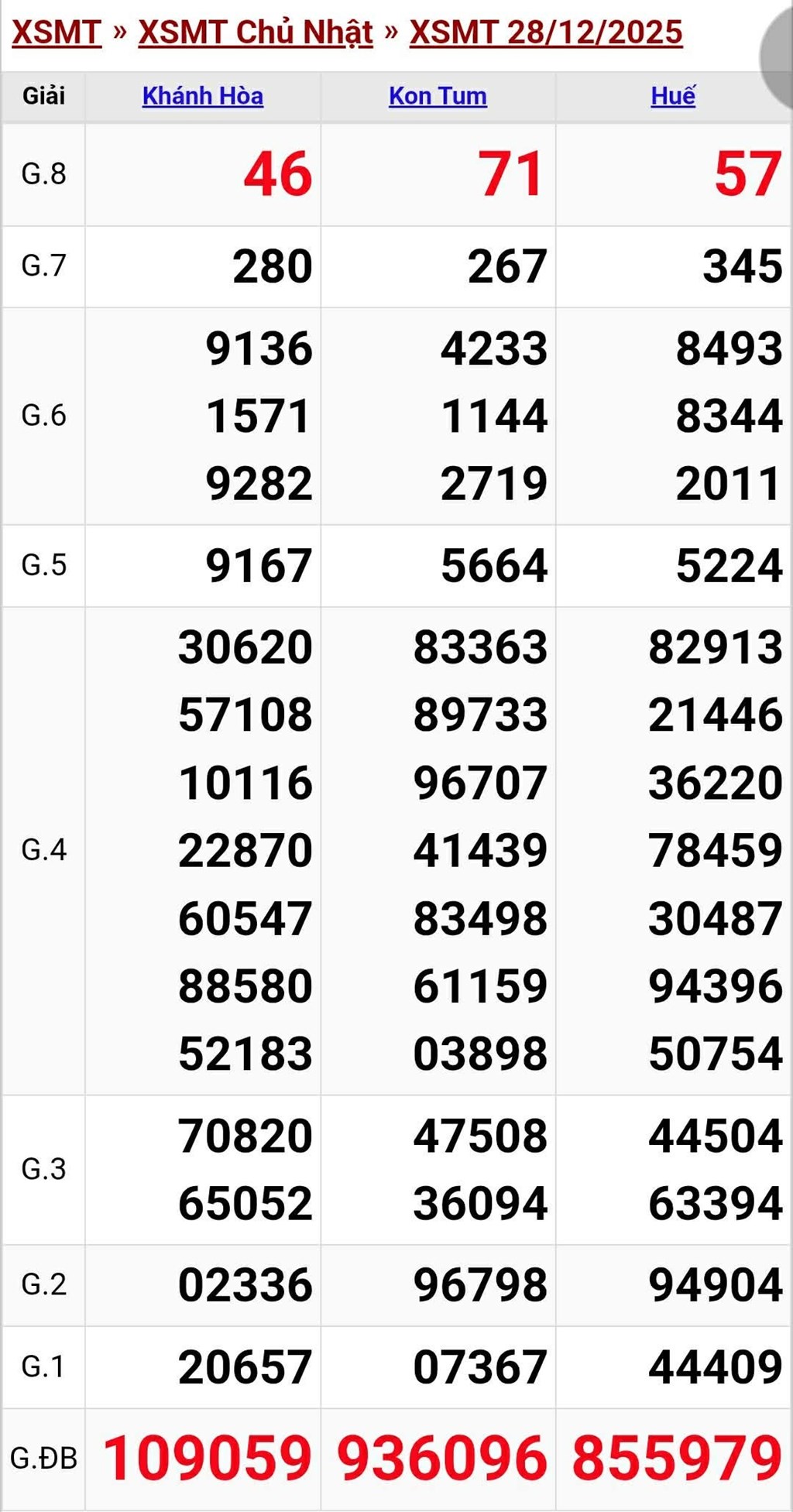 Bnews. XSMT 28/12. Kết quả xổ số hôm nay ngày 28/12. XSMT chủ Nhật. Trực tiếp KQXSMT ngày 28/12. Kết quả xổ số miền Trung hôm nay chủ Nhật ngày 28/12/2025.