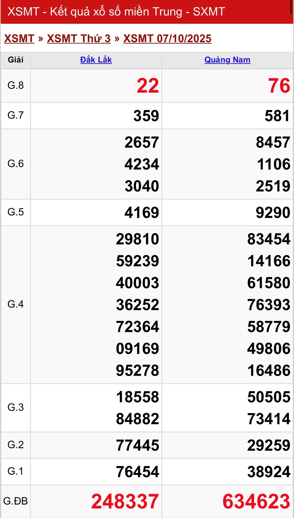 XSMT 7/10. Kết quả xổ số miền Trung hôm nay ngày 7/10/2025. XSMT thứ Ba ngày 7/10