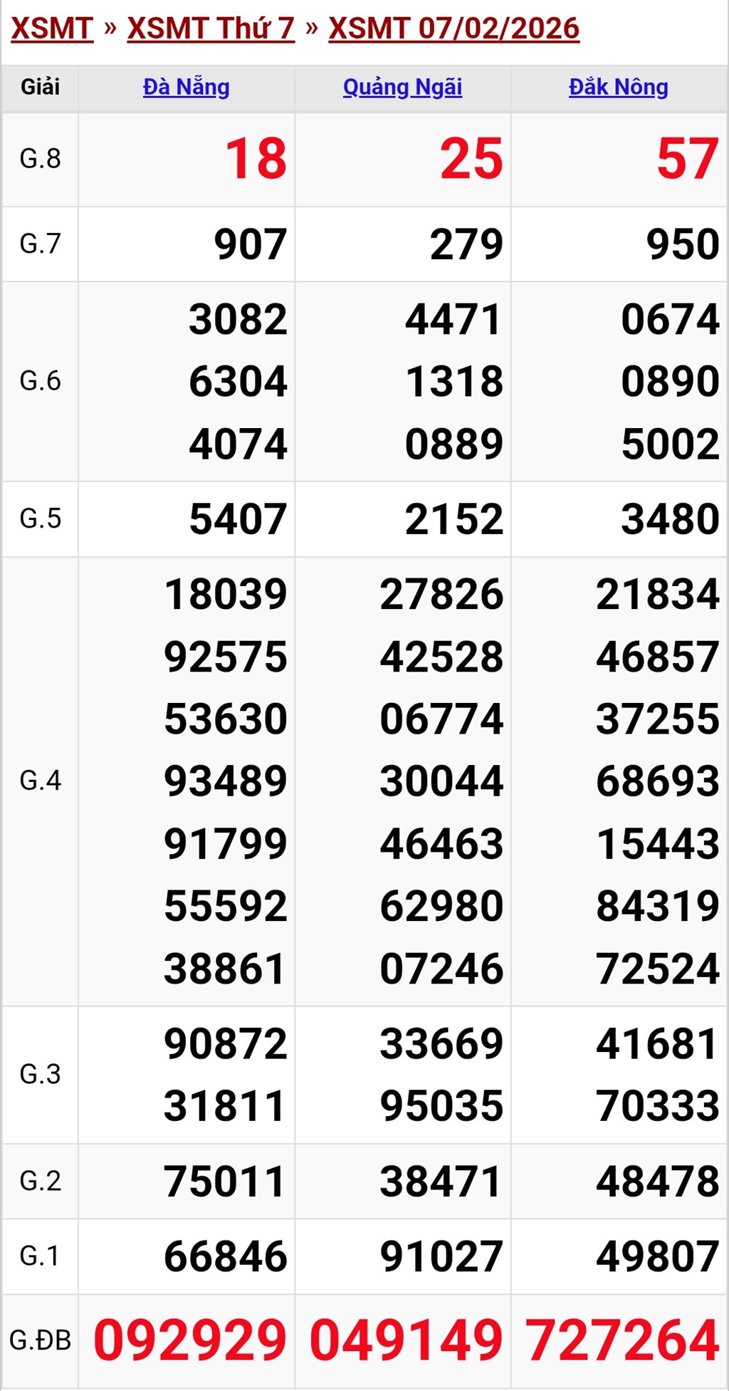 XSMT 7/2. Kết quả xổ số miền Trung hôm nay ngày 7/2/2026. XSMB thứ Bảy ngày 7/2