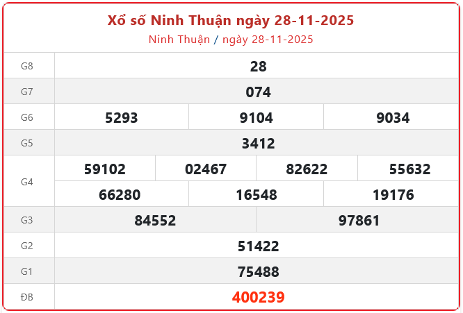 Xổ số Ninh Thuận ngày 28-11-2025. XSNT - XS đài Ninh Thuận 28/11/2025