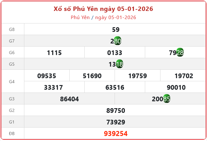 Xổ số Phú Yên ngày 05-01-2026. XSPY ngày 5/1/2026. XSPY hôm nay