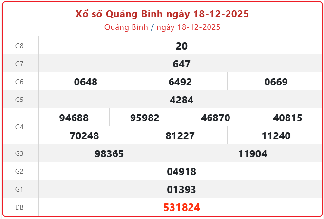 Xổ số Quảng Bình ngày 18-12-2025. XSQB - XS đài Quảng Bình 18/12/2025