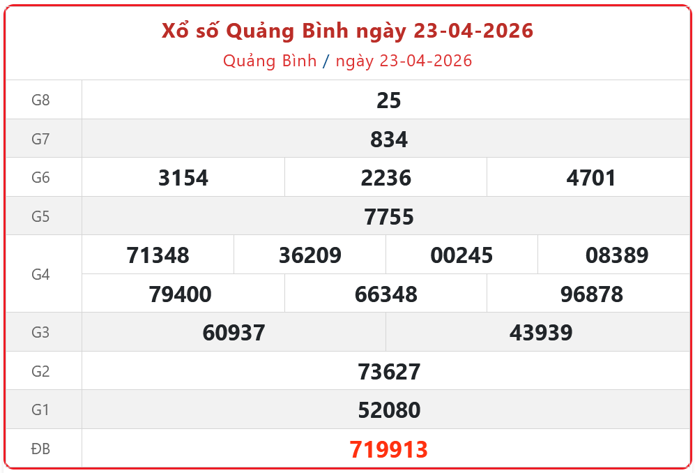 Xổ số Quảng Bình ngày 23-04-2026. XSQB - XS đài Quảng Bình 23/04/2026