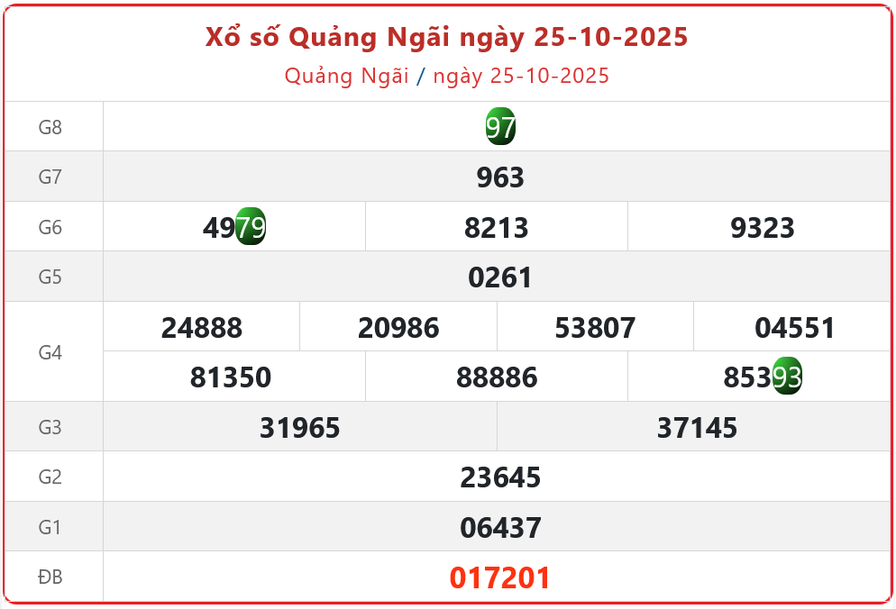 Xổ số Quảng Ngãi ngày 25-10-2025. XSQNG - XS đài Quảng Ngãi 25/10/2025 Xổ số Quảng Ngãi ngày 18-10-2025. XSQNG - XS đài Quảng Ngãi 18/10/2025