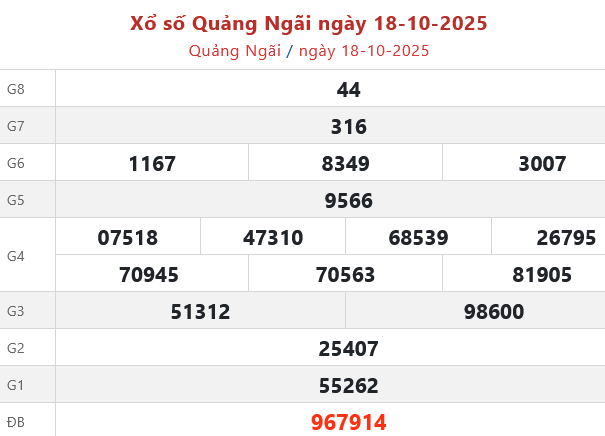 Xổ số Quảng Ngãi ngày 18-10-2025. XSQNG - XS đài Quảng Ngãi 18/10/2025