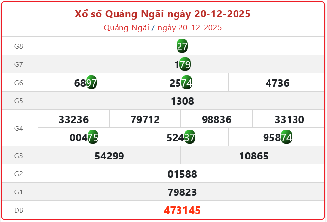 - xổ số Quảng Ngãi ngày 27/12