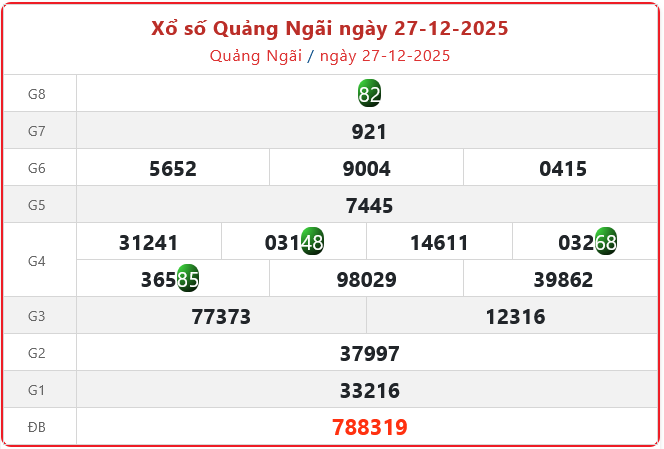 Xổ số Quảng Ngãi ngày 27-12-2025. XSQNG - XS đài Quảng Ngãi 27/12/2025