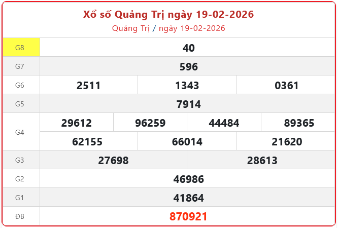 Xổ số Quảng Trị ngày 19-02-2026. XSQT - XS đài Quảng Trị 19/2/2026