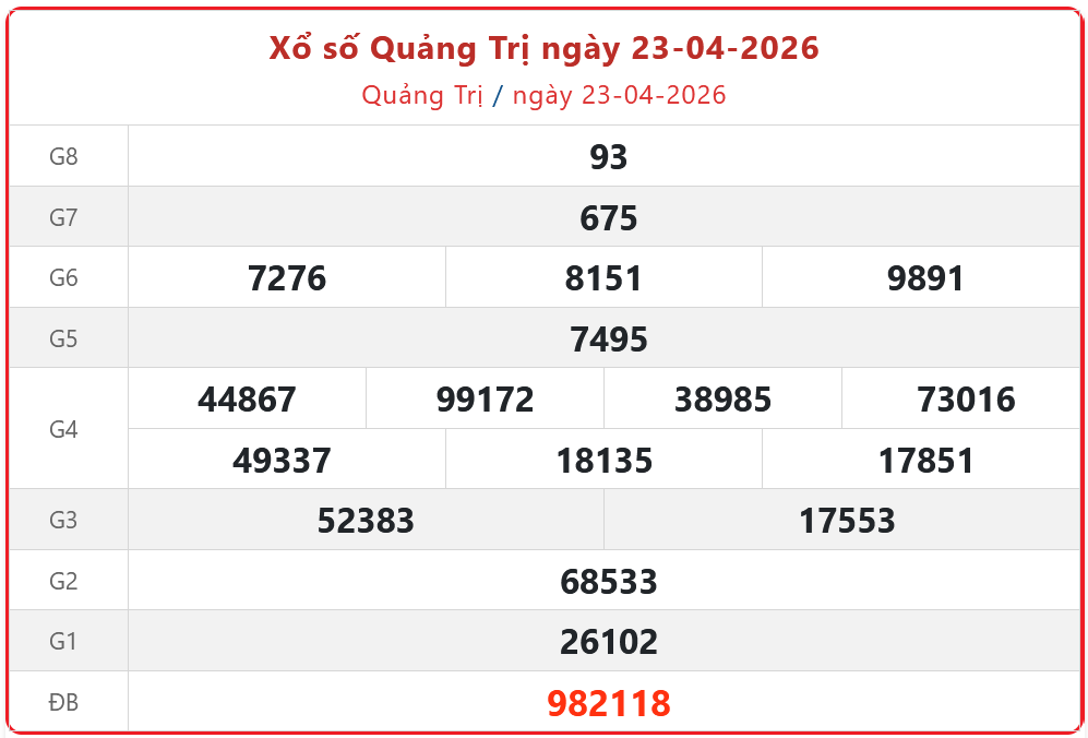 Xổ số Quảng Trị ngày 23-04-2026. XSQT - XS đài Quảng Trị 23/04/2026