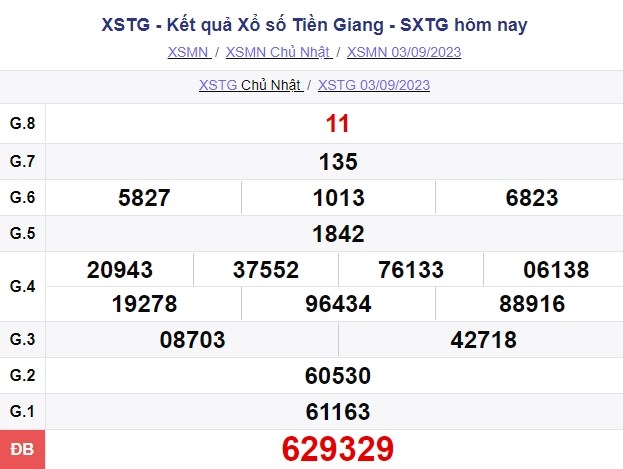 Xem lại Kết quả xổ số Tiền Giang Chủ nhật ngày 3/9/2023