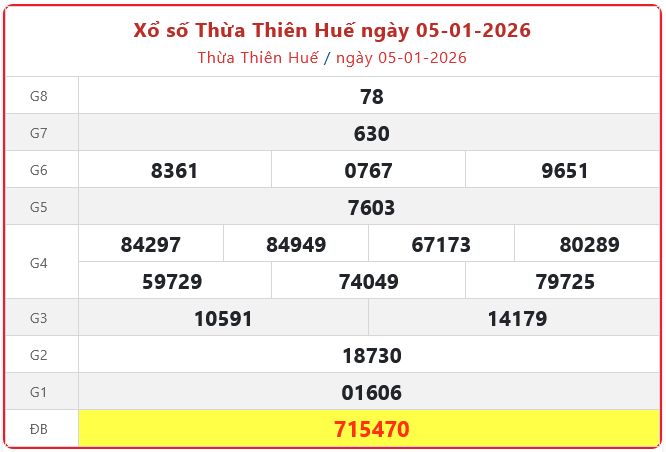 Xổ số Thừa Thiên Huế ngày 05-01-2026. XSTTH - XS đài Huế 05/01/2026