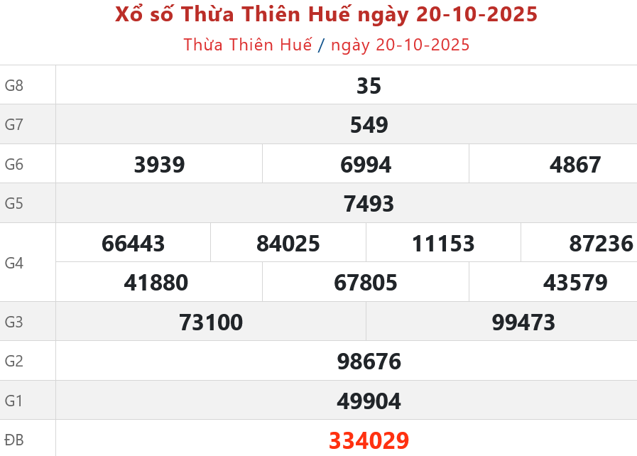Xổ số Thừa Thiên Huế ngày 20-10-2025. XSTTH - XS đài Huế 20/10/2025