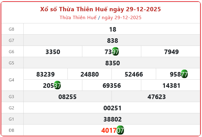 Xổ số Thừa Thiên Huế ngày 29-12-2025. XSTTH - XS đài Huế 29/12/2025
