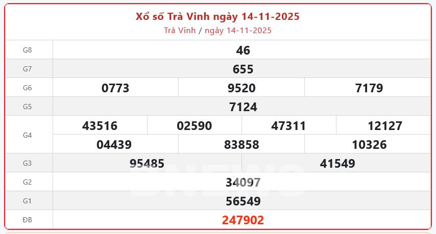 Kết quả xổ số Trà Vinh ngày 14/11/2025