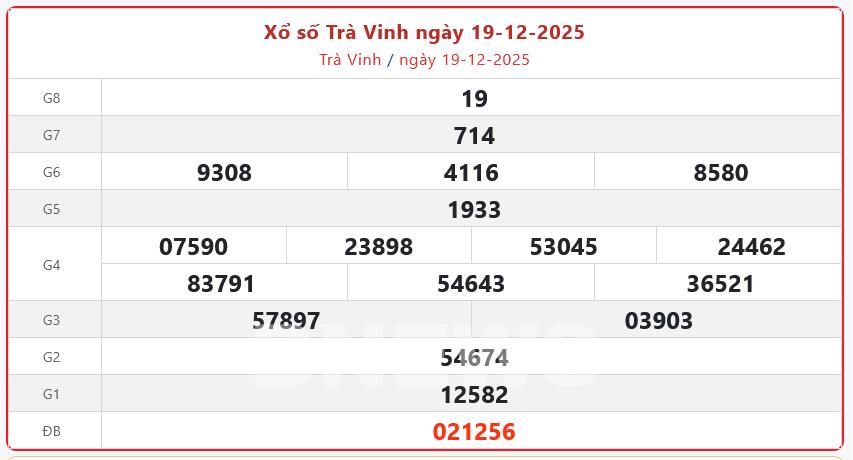 Kết quả xổ số Trà Vinh ngày 19/12/2025
