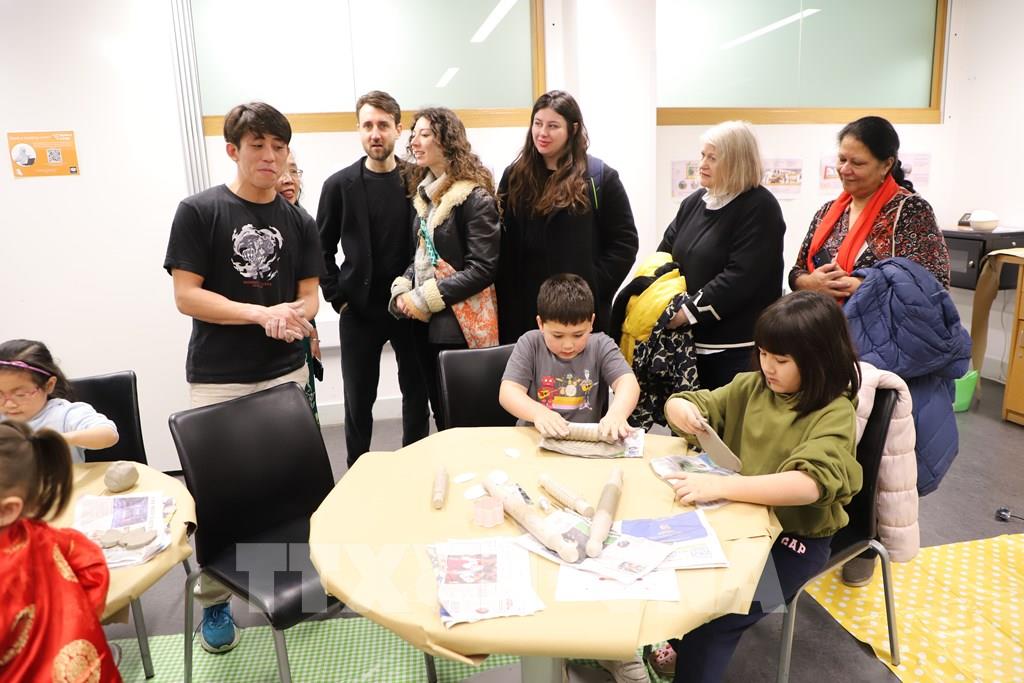 Khách mời tham quan khu nặn đất sét của các em nhỏ. Ảnh: Phong Hà - PV TTXVN tại Anh