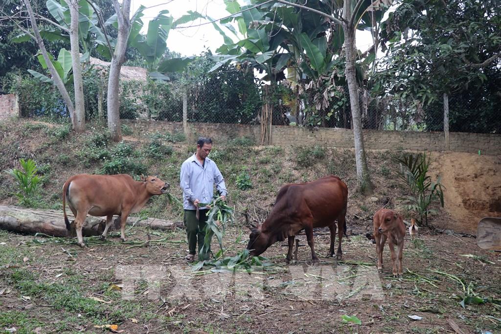 Từ sự hỗ trợ của Nhà nước, bò của gia đình ông Hà Trung Dũng, thôn Nhùng Dàm, xã Yên Sơn (Tuyên Quang) đã cho bê, mở ra hy vọng về nguồn thu nhập ổn định trong tương lai. Ảnh: Hoàng Hải - TTXVN