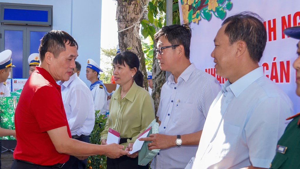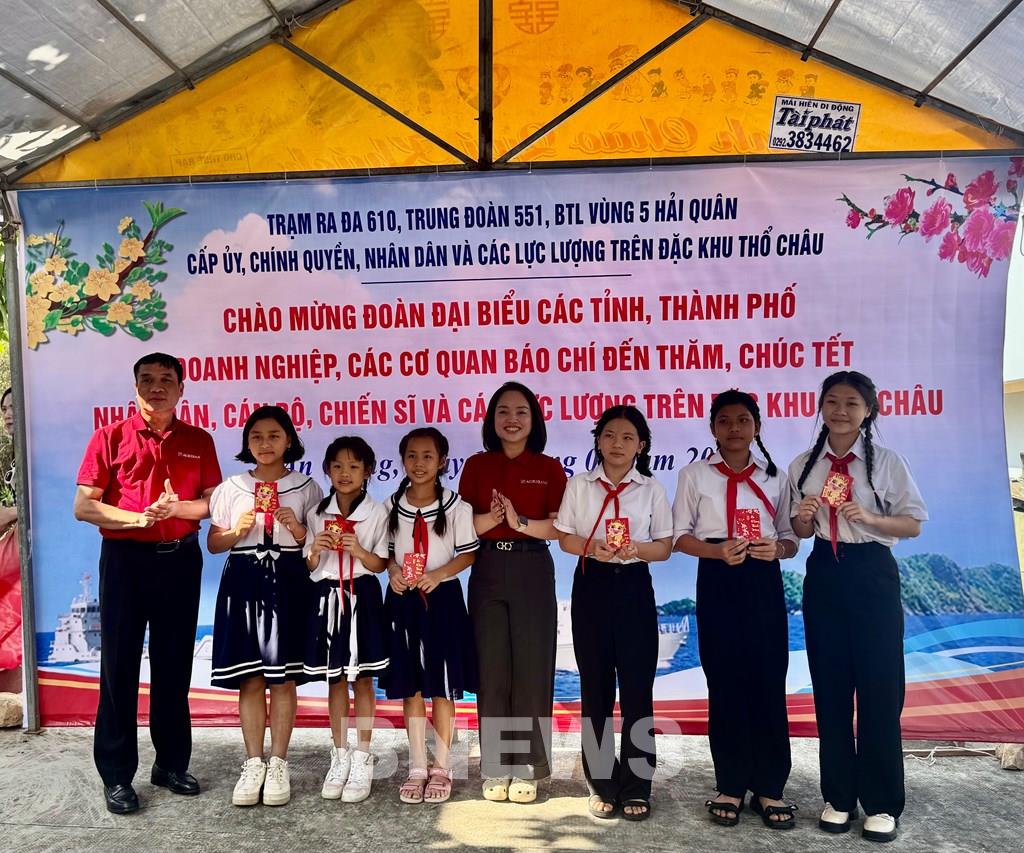 Đoàn công tác cũng đã trao tặng nhiều phần quà ý nghĩa, bày tỏ sự chia sẻ khó khăn, tình cảm của người dân cả nước với các lực lượng đóng quân và nhân dân tại Đặc khu Thổ Châu, đồng thời tham gia một số hoạt động vui xuân, đón Tết sớm với cán bộ, chiến sĩ và nhân dân.