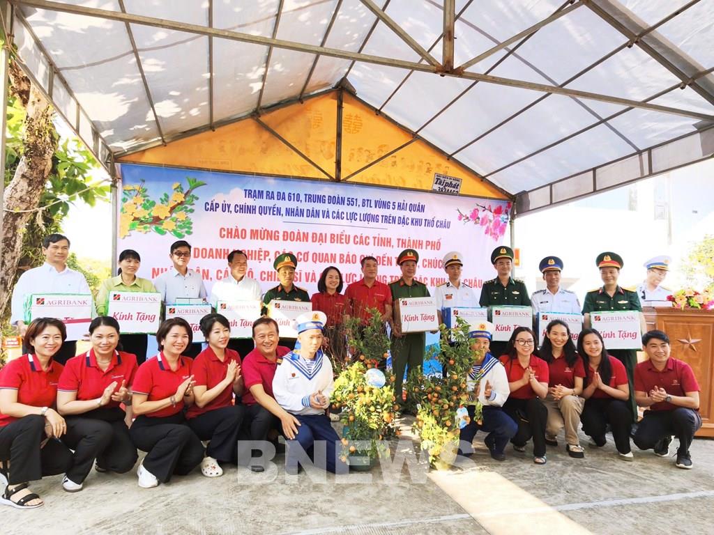Đoàn công tác của Agribank trao quà Tết tới các đơn vị quân dân Đặc khu Thổ Châu. Ảnh: Thanh Hương - TTXVN