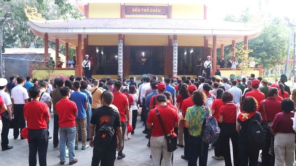 Đoàn công tác dâng hương tại Đền thờ Thổ Châu, đặc khu Thổ Châu. Ảnh: Thanh Hương - TTXVN