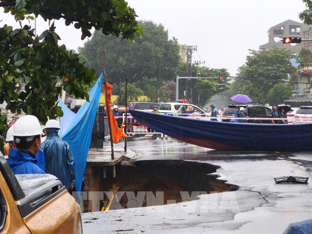 Ghi nhận của phóng viên TTXVN tại hiện trường, "hố tử thần" nằm sát lề bên phải đường Nguyễn Công Trứ (hướng đường Ngô Quyền đi Trần Hưng Đạo). Bề rộng hố chiếm gần nửa mặt đường, chiều dài hố hơn 10 mét, độ sâu khoảng 2 mét.Tại thời điểm sụt lún, có hai ô tô con đang đỗ sát lề đường bị rơi xuống hố, một ô tô con khác nằm một nửa trên miệng hố.