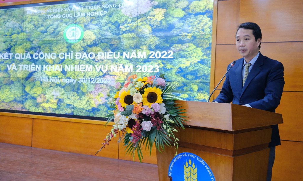 Trong số đó, gỗ và sản phẩm gỗ ước đạt 15,85 tỷ USD, tăng 7%; lâm sản ngoài gỗ ước đạt tỷ 1,1 USD, giảm 1,3%. Giá trị nhập khẩu gỗ và sản phẩm gỗ năm 2022 ước đạt 2,82 tỷ USD, tăng 4,1% so với 2021. Như vậy, giá trị xuất siêu lâm sản ước đạt 14,1 tỷ USD, tăng 6,5% so với cùng kỳ. Theo ông Bùi Chính Nghĩa, năm 2022, thị trường có nhiều biến động do ảnh hưởng từ xung đột Nga - Ukraine và đại dịch COVID-19. Tuy nhiên, nhờ chỉ đạo của Chính phủ, các bộ, ngành và sự tích cực, chủ động vượt khó của doanh nghiệp, xuất khẩu gỗ và lâm sản tiếp tục tăng trưởng. Hoa Kỳ, Nhật Bản, Trung Quốc, EU, Hàn Quốc là các thị trường xuất khẩu chính với kim ngạch ước đạt 15,48 tỷ USD, chiếm trên 90% tổng giá trị xuất khẩu lâm sản. Không chỉ vượt chỉ tiêu về xuất khẩu, các chỉ tiêu khác của ngành đều đạt và vượt mục tiêu đề ra. Nổi bật là: diện tích rừng trồng đạt 259.615 ha, vượt 6,4% so với kế hoạch đề ra, tăng 5,9% so với năm 2021; sản lượng gỗ khai thác năm 2022 gần 19,7 triệu m3, vượt 6,47% kế hoạch, tăng 7,2% năm 2021; thu dịch vụ môi trường rừng đạt gần 3.687 tỷ đồng, đạt 122,9% kế hoạch thu năm 2022, tăng 20,6% so với năm 2021; tỷ lệ che phủ rừng đạt 42,02%. Năm 2022, ngành lâm nghiệp cũng chủ động nắm bắt, khoanh vùng các điểm nóng, địa bàn, tụ điểm trọng điểm về chặt phá rừng, cất giữ, chung chuyển lâm sản. Kịp thời tổ chức các đoàn kiểm tra, phối hợp với các cơ quan, đơn vị trong công tác bảo vệ rừng và phòng chống cháy rừng. Qua đó, các lực lượng chức năng đã phát hiện và xử lý 3.624 vụ phá rừng. Diện tích rừng bị tác động là 1.081 ha, giảm 1% so với năm 2021. Cả nước đã xảy ra 85 vụ cháy rừng, giảm 111 vụ, tương ứng giảm 57% so với năm 2021; diện tích thiệt hại do cháy là 41,35 ha, giảm 1.470 ha, tương ứng giảm 97,3% với năm 2021. Tuy nhiên, năm 2022 vẫn còn tồn tại điểm nóng về phá rừng, vận chuyển, tàng trữ lâm sản trái phép và chống người thi hành công vụ, nhất là các tỉnh khu vực Tây Nguyên. “Đây là địa bàn nóng nhất về phá rừng, khai thác lâm sản trái phép chưa được phát hiện sớm để có biện pháp chỉ đạo, ngăn chặn và giải quyết kịp thời”, ông Bùi Chính Nghĩa chia sẻ. Bên cạnh đó, kết cấu hạ tầng cho phát triển lâm nghiệp chưa được đầu tư đúng mức, nhất là tại các ban quản lý rừng, công ty lâm nghiệp hạ tầng cơ sở yếu kém, thiếu trang thiết bị phục vụ công tác bảo vệ rừng, phòng cháy, chữa cháy. Thực trạng kiểm lâm và lực lượng bảo vệ rừng bỏ việc, thôi việc xảy ra ở nhiều nơi, nhiều khu vực khó tuyển dụng lao động mới. Các chính sách liên quan đến đầu tư lâm nghiệp không hấp dẫn để thu hút người dân và doanh nghiệp đầu tư vào trồng rừng thâm canh. Thống kê cho thấy, thu nhập trên mỗi ha rừng trồng là rất thấp, chỉ đạt bình quân 10 triệu đồng/ha/năm, dẫn đến thu nhập của người trồng rừng thấp, chỉ chiếm 25% tổng thu nhập. Với kết quả đạt được năm 2022, ông Bùi Chính Nghĩa cho biết, ngành đặt mục tiêu năm 2023 với tốc độ tăng giá trị sản xuất lâm nghiệp từ 5-5,5%; tỷ lệ che phủ rừng toàn quốc duy trì ổn định khoảng 42%; giá trị xuất khẩu lâm sản 17,5 tỷ USD. Tỷ lệ che phủ rừng duy trì ổn định 42%, nâng cao chất lượng rừng. Trên kế hoạch đặt ra của Tổng cục Lâm nghiệp, Thứ trưởng Bộ Nông nghiệp và Phát triển nông thôn Nguyễn Quốc Trị yêu cầu tổng cục bám sát vào kế hoạch đặt ra và triển khai ngay từ đầu năm, không thỏa mãn với kết quả đạt được trong năm 2022. “Điển hình như về mặt diện tích rừng bị cháy năm 2022 giảm rất mạnh mà thỏa mãi, chủ quan. Nếu không dự báo tốt, không canh gác tốt, không phát hiện hiện thời khi có cháy thì hậu quả rất khó lường. Cục Kiểm lâm cũng các đơn vị ngành lâm nghiệp, nhất là các vườn quốc gia phải gương mẫu đi đầu trong phòng, chống cháy rừng”, Thứ trưởng Nguyễn Quốc Trị nhấn mạnh. Thứ trưởng Nguyễn Quốc Trị cũng nêu rõ, Nghị định số 107/2022/NĐ-CP của Chính phủ về thí điểm chuyển nhượng kết quả giảm phát thải và quản lý tài chính thỏa thuận chi trả giảm phát thải khí nhà kính vùng Bắc Trung Bộ (ERPA) là nghị định đầu tiên được xây dựng nhằm thực hiện việc chuyển nhượng kết quả giảm phát thải, tín chỉ carbon rừng. Các đơn vị phải triển khai ngay kế hoạch, đồng thời đàm phán với đối tác cũng như thực thi ở các địa phương. Thực hiện thành công nghị định này sẽ là nền tảng để xây dựng nghị định sửa đổi, bổ sung một số điều của Nghị định số 156/2018/NĐ-CP của Chính phủ quy định chi tiết thi hành một số điều của Luật Lâm nghiệp hiệu quả. Để đạt được mục tiêu đề ra, Tổng cục Lâm nghiệp cũng đề nghị lãnh đạo Bộ Nông nghiệp và Phát triển nông thôn xem xét báo cáo Thủ tướng Chính phủ, Chính phủ phê duyệt Nghị 